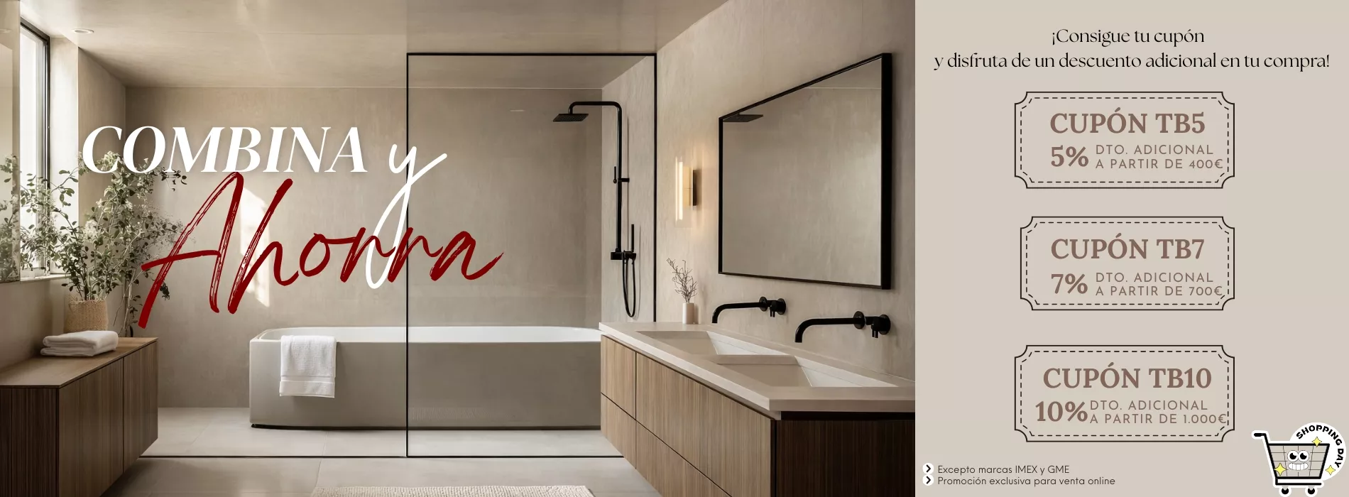 Todobaño.es es una tienda especializada en artículos para el baño. Disponemos de todos los materiales que necesitas para reformar tu cuarto de baño o aseo; puedes comprar muebles de baño, platos de ducha, mamparas de baño y ducha, lavabos y encimeras de baño, sanitarios, complementos y accesorios de baño. Además de piezas para los aparatos sanitarios: comprar grifos, conjuntos de ducha o columnas de hidromasaje, bañeras…Y siempre al mejor precio de forma segura y fácil desde casa. Hacemos envíos a Toda España con envío gratuito en toda la península para importes superiores a 100 € y nos aseguramos de que tus compras lleguen siempre en perfecto estado y en los plazos establecidos en nuestra web.